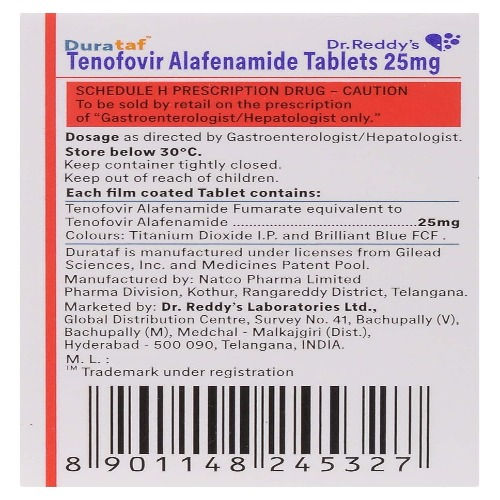 Durataf 25 mg Tablet helps to reduce the amount of Hepatitis-B Virus in the body, which can help slow the progression of liver damage caused by the virus.