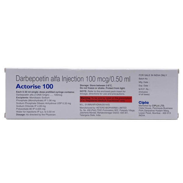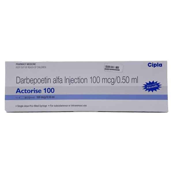 Actorise 100 mcg injection, containing darbepoetin alfa, is a vital erythropoiesis-stimulating agent designed to effectively combat anemia associated with chronic kidney disease and chemotherapy. This medication functions by promoting the bone marrow's production of red blood cells, thereby alleviating the fatigue and weakness often experienced by patients with low hemoglobin levels. Administered via a prefilled syringe, Actorise ensures precise dosing and ease of use for both patients and healthcare providers. It’s important to monitor patients for potential side effects, including high blood pressure or allergic reactions, and to consult a healthcare professional before starting treatment. This injectable solution not only enhances the quality of life for individuals suffering from anemia but also supports their overall health management during critical treatment phases. By stimulating red blood cell production, Actorise plays a crucial role in the comprehensive care of patients facing these challenging conditions. Always discuss with your doctor about any pre-existing conditions or medications that could interact with darbepoetin alfa to ensure safe and effective use.