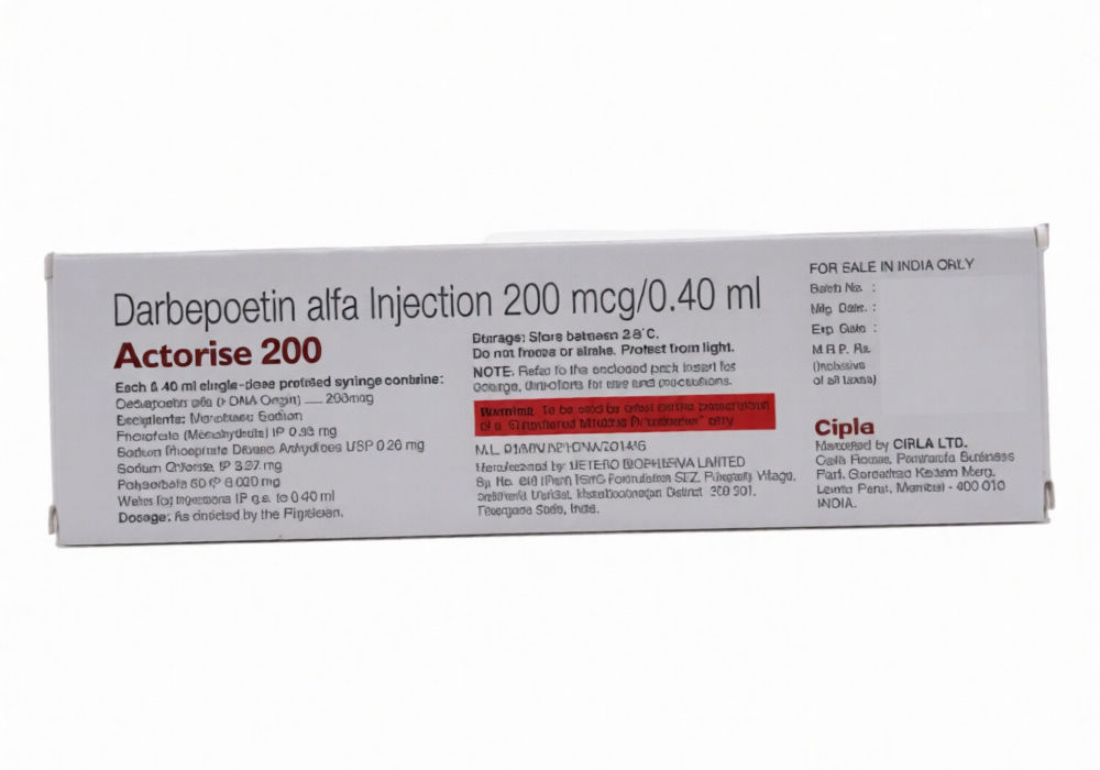 Actorise 200 mcg Injection is a powerful erythropoiesis-stimulating agent designed to combat anemia, particularly in patients suffering from chronic kidney disease or those undergoing chemotherapy. This medication functions by activating...