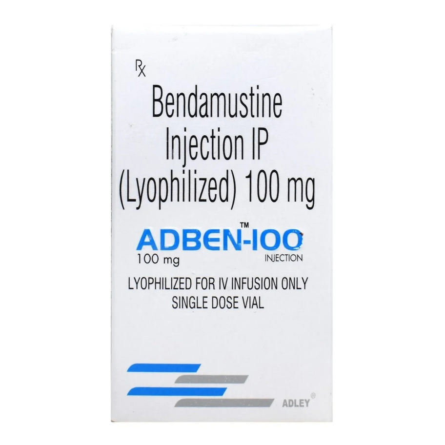 Adben 100 mg Injection is a potent anticancer treatment designed to combat various types of cancer, particularly chronic lymphocytic leukemia (CLL), which affects the body’s white blood cells. This chemotherapy agent, also known as Bendamustine, works by interfering with the cancer cell's ability to grow and divide, ultimately leading to their destruction. In addition to its use in CLL, Adben is often prescribed in conjunction with other anticancer therapies to effectively manage non-Hodgkin's lymphoma, a cancer that arises from the immune system's lymphocytes. Patients receiving this medication should be monitored for potential side effects, including changes in blood counts, as well as signs of infection or unusual bruising. It is essential to discuss any pre-existing medical conditions or current medications with your healthcare provider to avoid interactions. Adben 100 mg Injection represents a vital option for patients battling these specific cancers, offering hope through its targeted approach. Always consult a healthcare professional for personalized advice and to ensure safe and effective treatment with this injection.