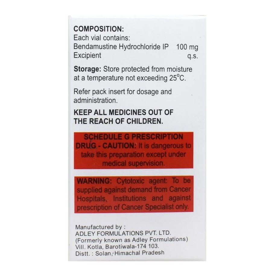• Pregnancy: Use of Adben 100 mg Injection may be unsafe during pregnancy, as animal studies indicate that it may harm the developing fetus. However, if you are pregnant or planning to become pregnant, it is important to talk to your doctor about the potential risks and benefits of taking Bendamustine 100 mg Injection during pregnancy. Your doctor will be able to help you make the best decision for you and your baby's health.